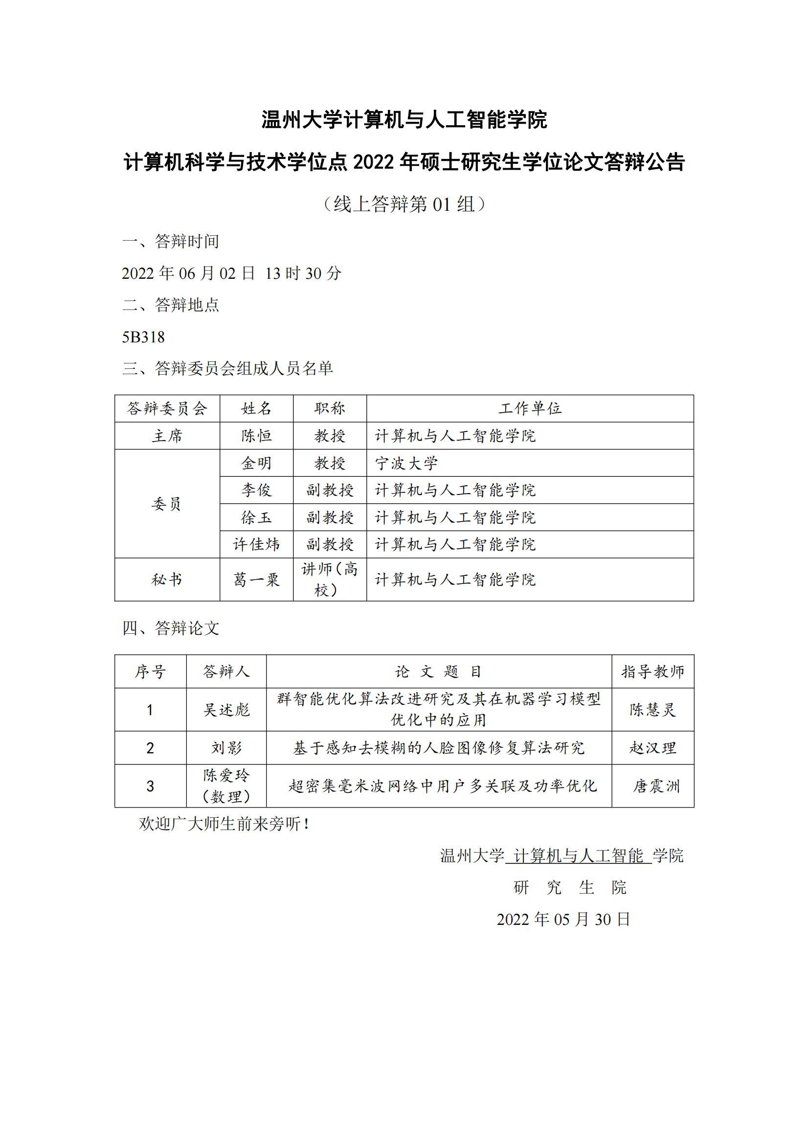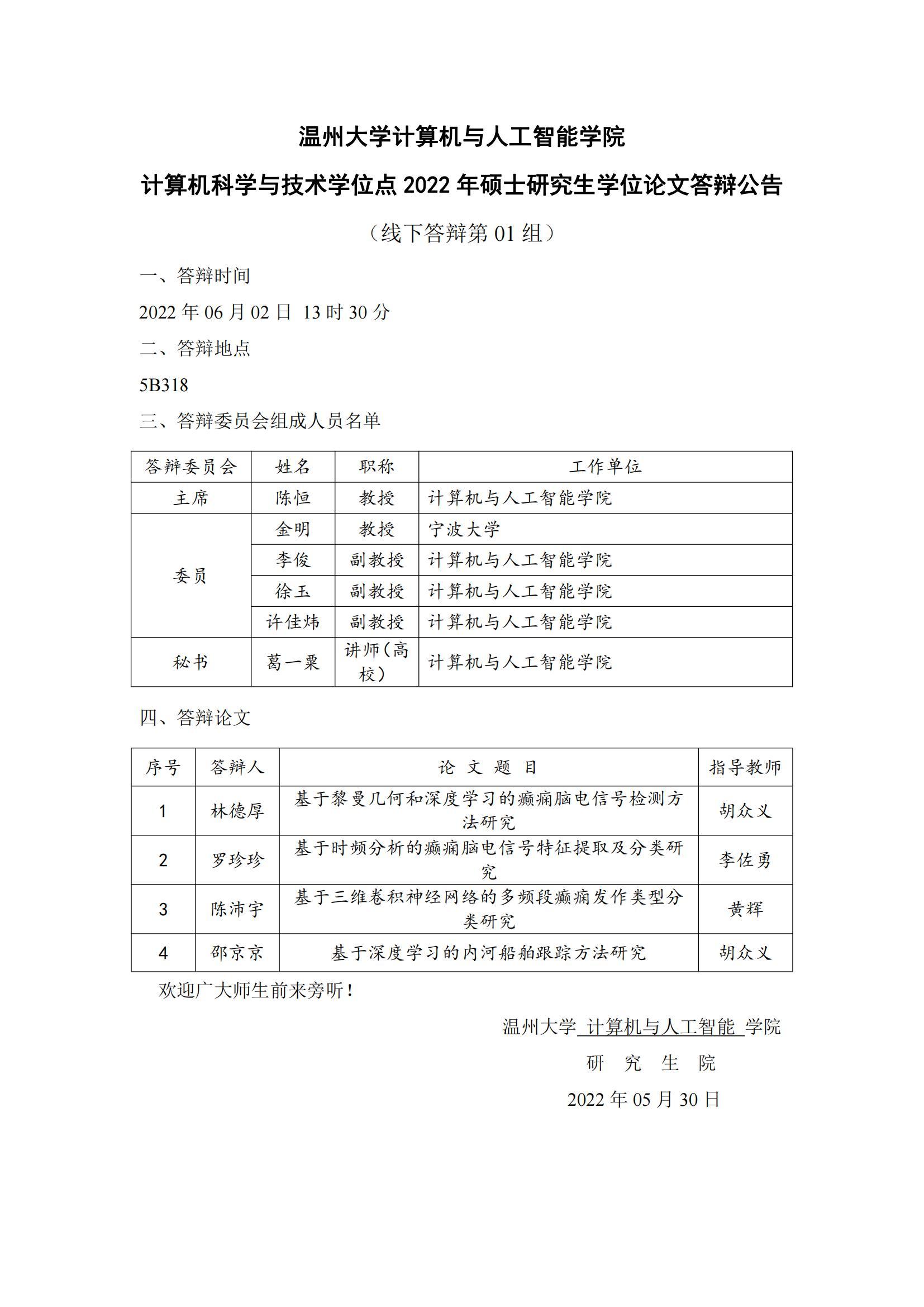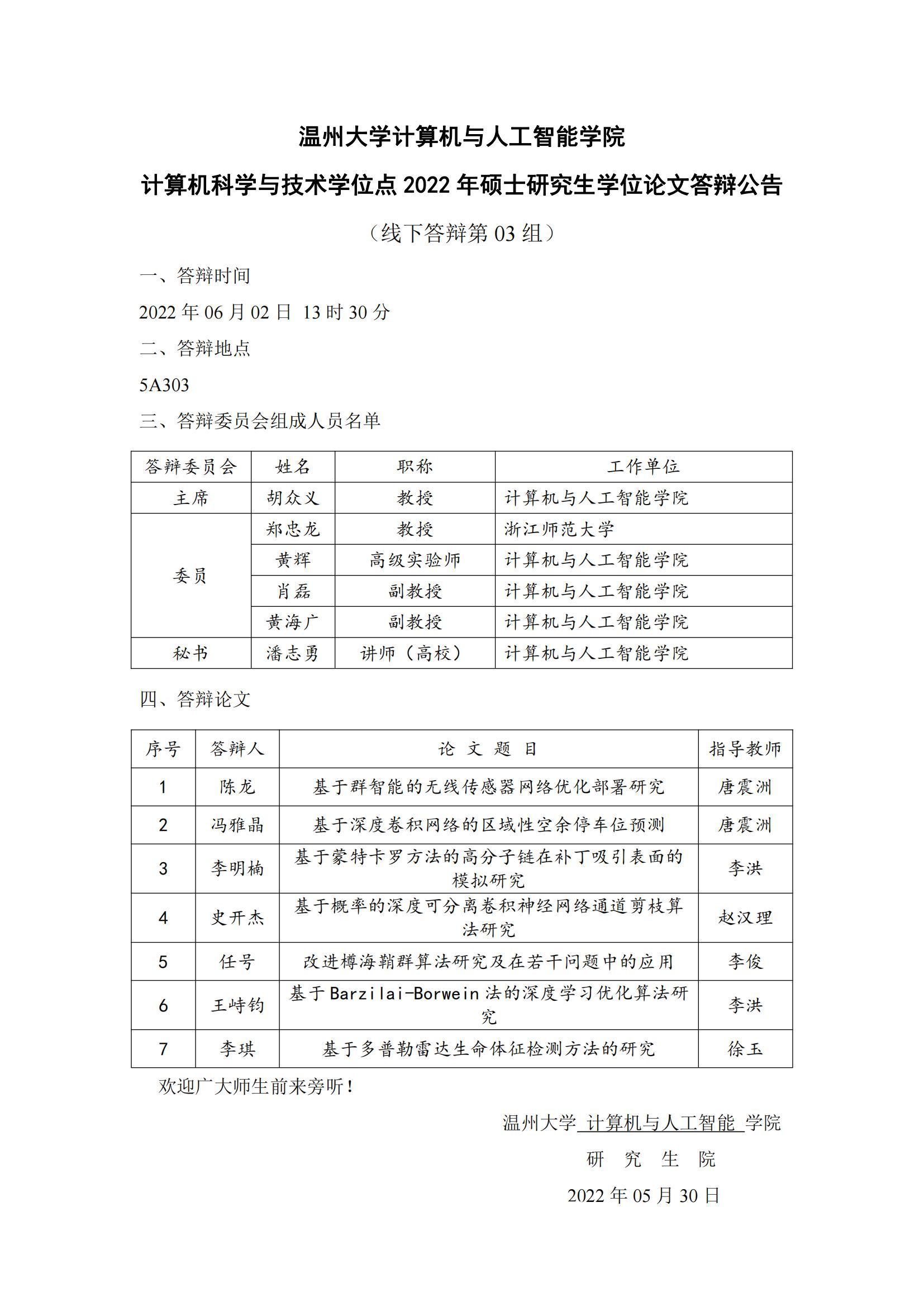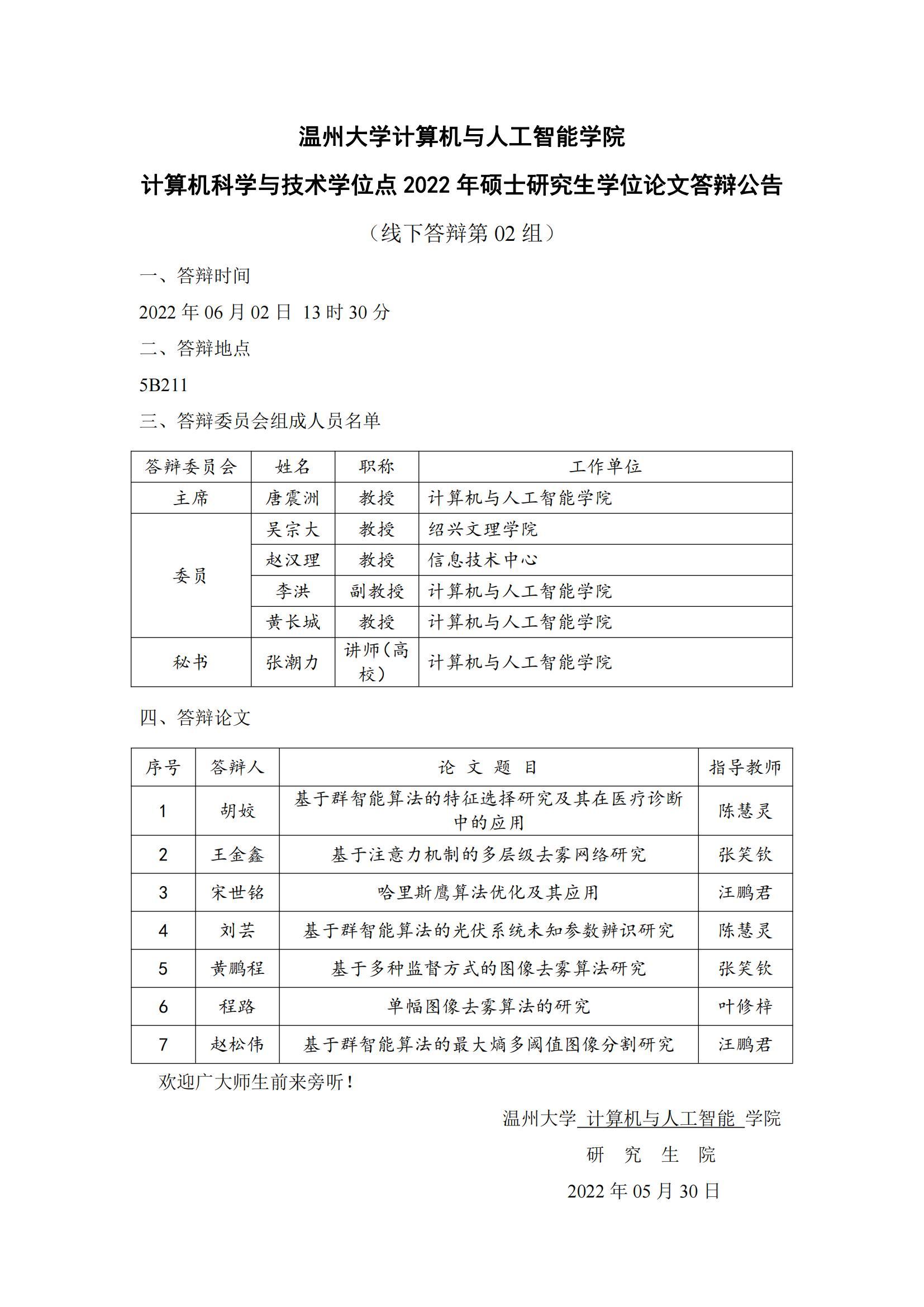 六合彩网站-六合彩资料网站 计算机科学与技术学位点2022年硕士研究生学位论文答辩公告