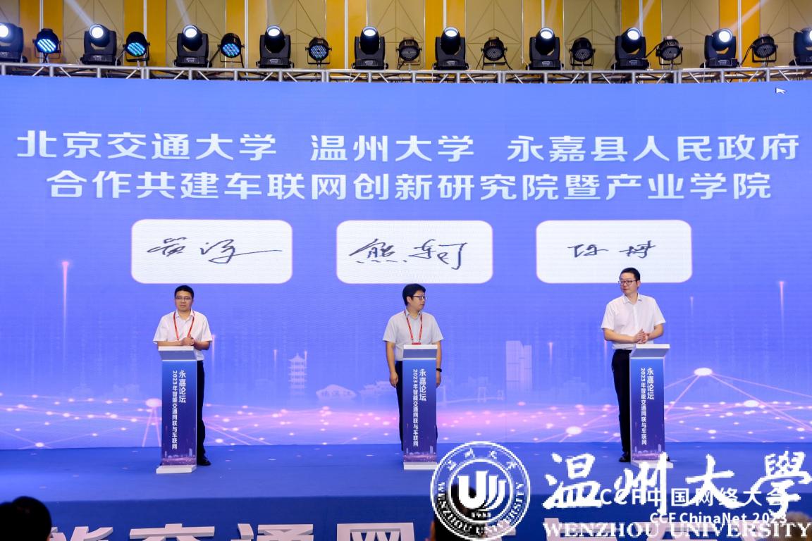 “智能交通网联与车联网”专题论坛举办了车联网产业联盟启动仪式,融合政府、高校、企业和行业协会的力量,共同打造车联网行业新范式;永嘉县人民政府、北京交通大学和温州大学三方正式签约车联网创新研究院暨产业六合彩网站 合作共建意向书,通过三方优势互补,推动研究院在科技创新、人才培养、服务社会等方面展现新作为。