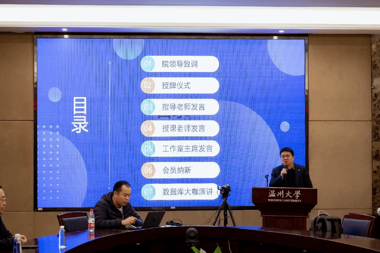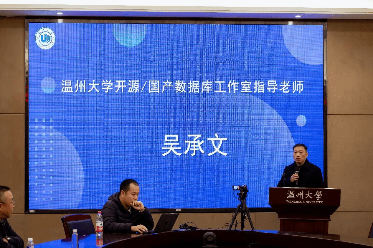 随后,数据库授课老师陈卫星上台宣讲了温州大学开源/国产数据库工作室成立的目标和课程学习计划。