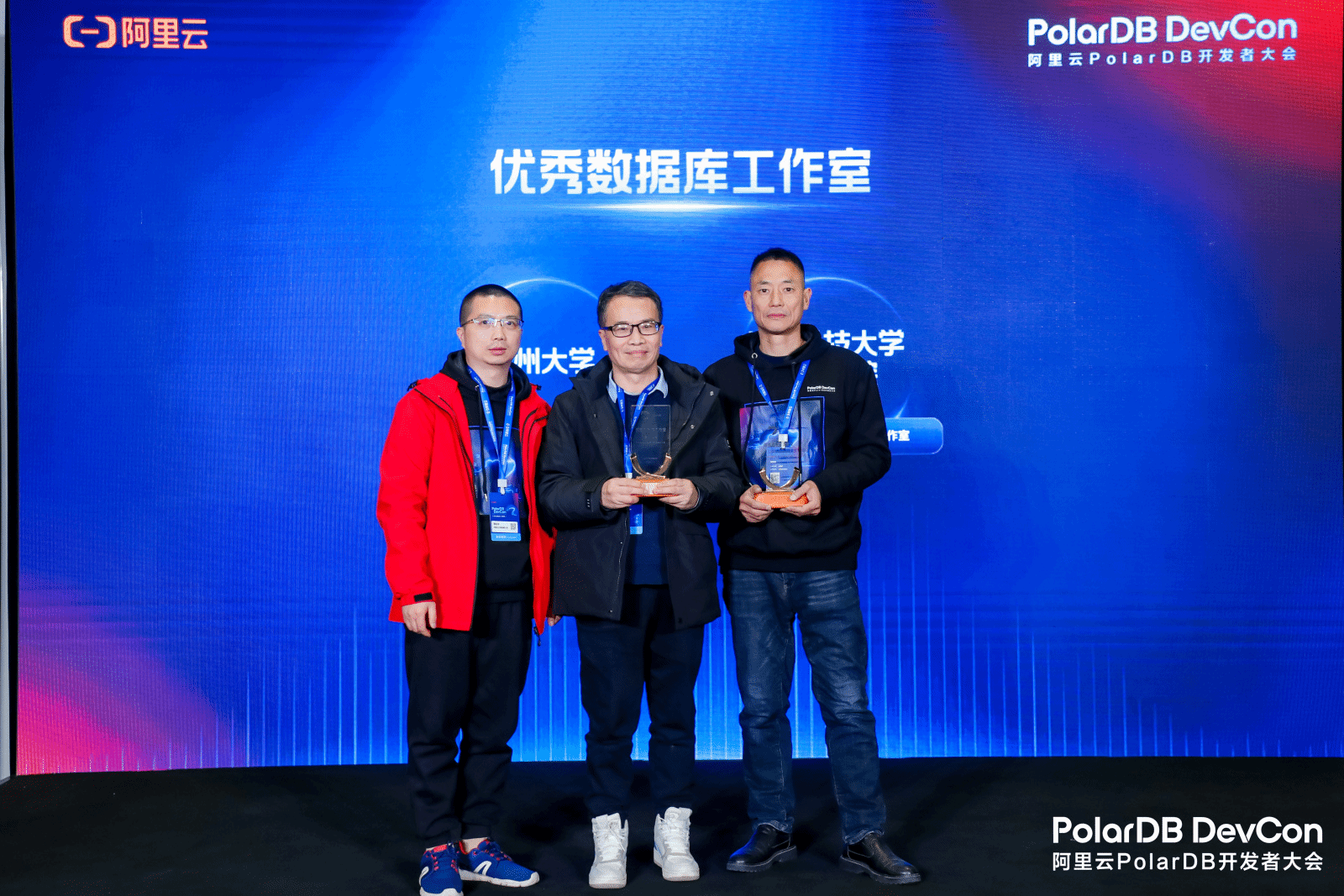 此次大会中,温州大学(暨温州地区)的PolarDB国产数据库工作室以卓越的工作成绩获评“优秀数据库工作室”。黄长城老师作为该工作室指导教师登台领奖,阐述了温州大学在推动国产数据库发展方面所做出的努力,并感谢了阿里云和开源社区的支持和认可。