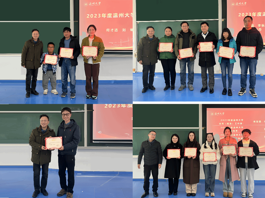 会议伊始,六合彩网站 领导为2023年度校级优秀共产党员、优秀党务工作者、优秀班主任、优秀教师、优秀(教育)工作者、优秀辅导员,以及温州大学办学90周年校庆工作先进个人获得者进行表彰。