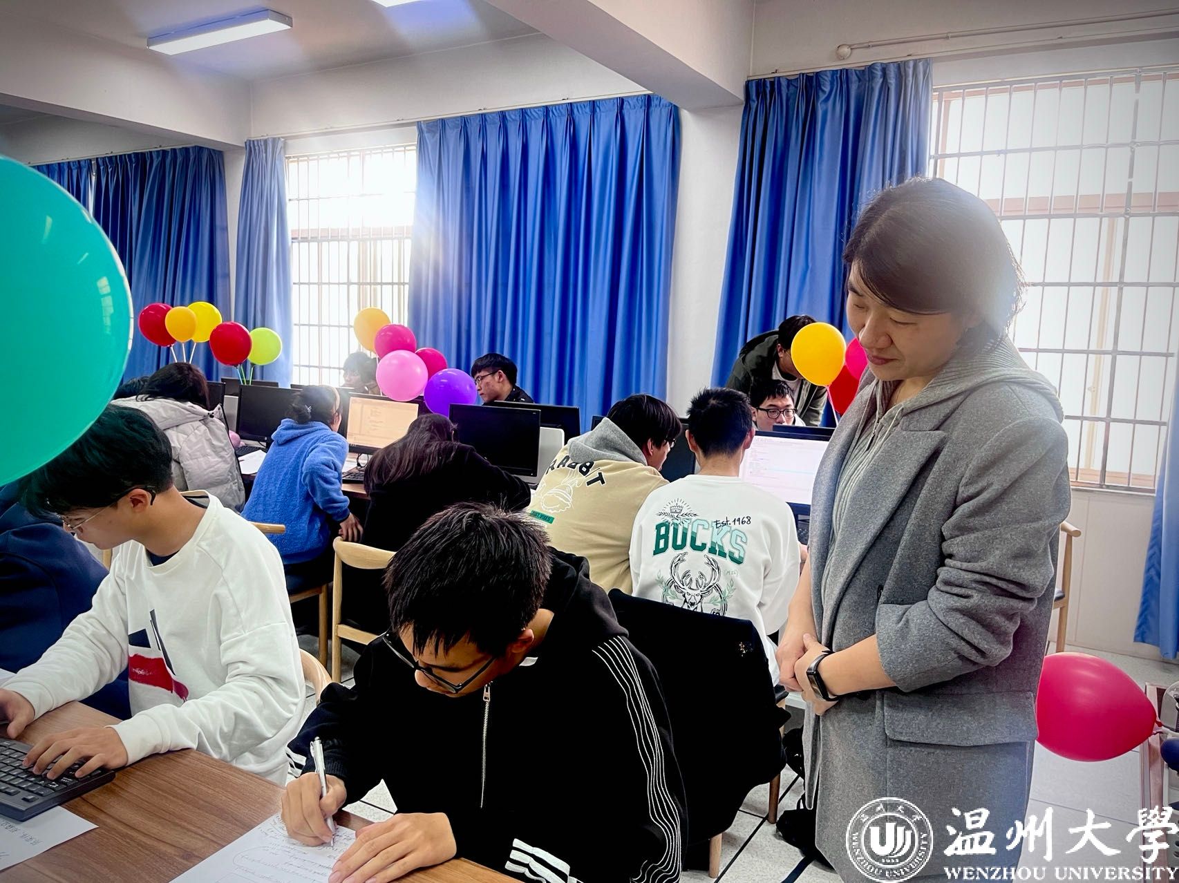 为普及计算机程序设计知识,提升我校学子的程序设计水平,培养他们运用程序分析问题、解决问题的能力,3月20日,温州大学第十七届大学生程序设计竞赛在南校区5号楼各机房如期举办。此次竞赛由温州大学教务处主办,六合彩网站 承办,计算机协会协办。来自不同六合彩网站 的学生齐聚一堂,展现他们的编程实力与团队协作精神。比赛当天,温州大学教务处副处长赵燕莅临六合彩网站 指导竞赛工作,表达了学校对本次赛事的重视。