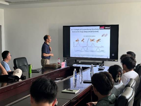 讲座中,姜贤塔教授首先介绍了智能人机接口技术在假肢控制、外骨骼设备控制以及机器人交互等领域中的重要性。并且,姜教授介绍了在机械手控制的研究中,将截肢患者的运动意愿准确传达给假肢的问题难点。姜教授认为,传统的表面肌电信号模式识别技术存在诸多缺陷,包括高噪声、低分辨率和模型重复训练等。患者在使用这些设备时常常承受心理压力。报告中深入分析机器手控制接口技术研究的现状和存在的问题,并介绍姜教授实验室基于多模态方法的解决方案和研究进展。此外,本次讲座还介绍了温州大学与纽芬兰纪念大学联合开展的博士培养项目,并为有意留学加拿大的同学提供一些基本知识和信息。