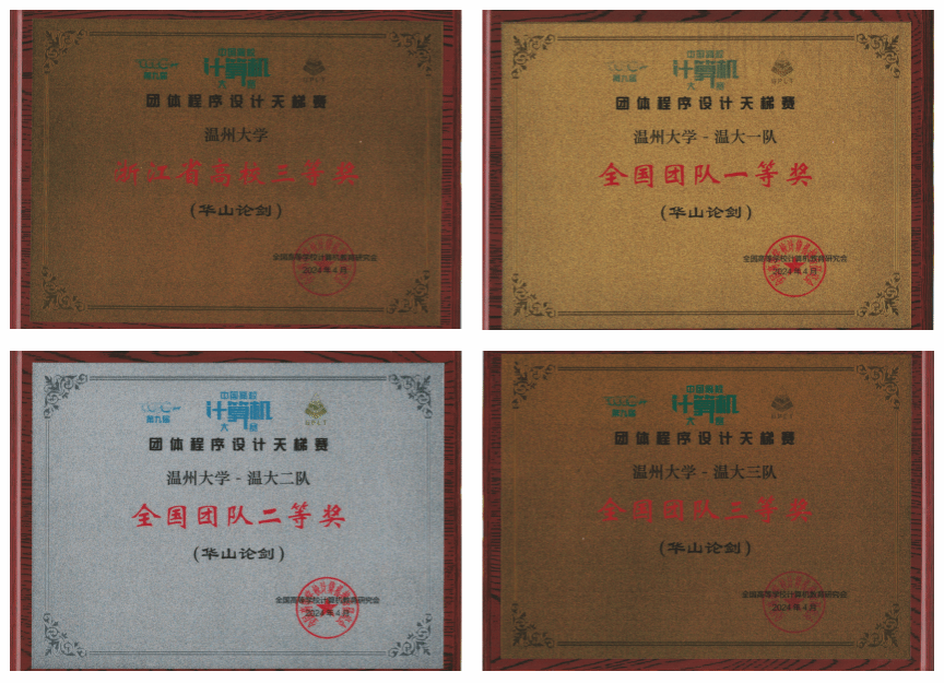 近日,第九届中国高校计算机大赛-团体程序设计天梯赛总决赛在线上线下同时开赛。以六合彩网站 学生为主力的温州大学代表队派出3支队伍参赛,“温大一队”夺得参赛9年来的首个全国团队一等奖,“温大二队”、“温大三队”分别获得全国团队二等奖、三等奖,团队成绩创历史最佳。同时,温州大学获浙江省高校三等奖,在参赛的省内37所本科院校中排名第10,也属首次获得高校奖。另外,何卓睿同学斩获我校首个天梯赛个人一等奖,毛烨超、杨德曙同学获得个人二等奖,还有十名选手获得个人三等奖。