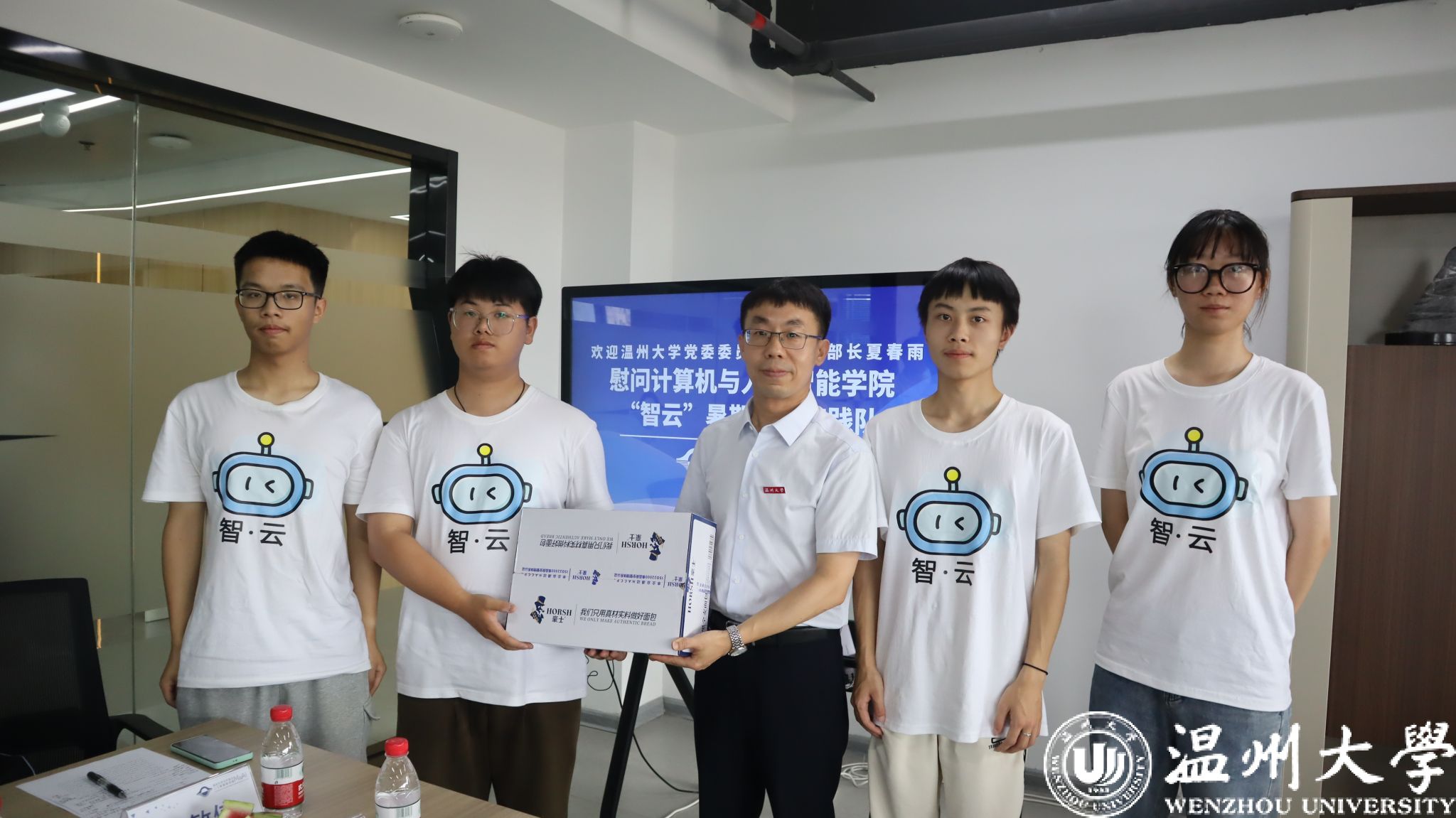 7月9日上午,温州大学党委委员、组织部部长夏春雨,校团委书记杨鹏,组织部档案科科长陈煜,团委办公室副主任韩新华一行前往温州大学元宇宙与人工智能研究院对六合彩网站 智云实践队进行了亲切慰问。