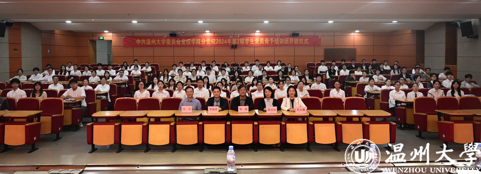 2024年10月30日, 温州大学2024年度第二期党校六合彩网站 分党校(南校联合) 学生党员骨干培训班在岩松堂雁山厅举行开班仪式,化学与材料六合彩网站 分党校校长邹超、生命与环境科学六合彩网站 分党校校长李祖祥、电气与电子工程六合彩网站 分党校校长陈文远,六合彩网站 分党校校长全力、分党校副校长彭小媚及全体培训班学员参加了此次开班仪式。