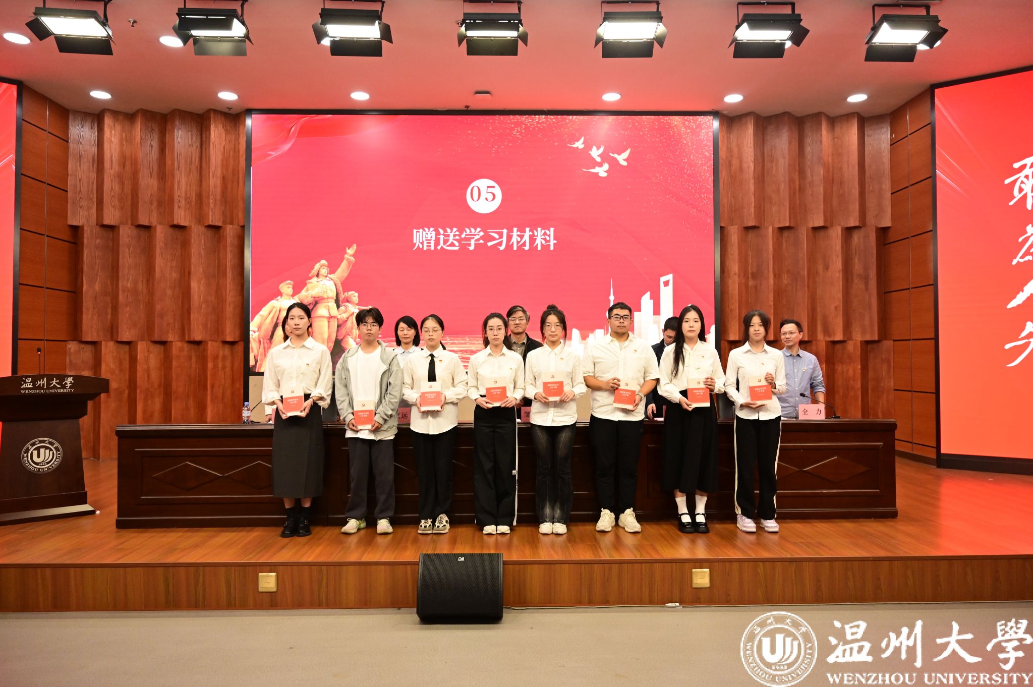 最后,各位领导为学员们赠送了培训材料,这些学习资料不仅是知识的传递,更承载着学校和党校对学员们的殷切期望。温州大学第二期学生党员骨干培训班开班仪式在热烈、庄重而充满期待的气氛中圆满结束。期待学员们在接下来的培训中加强党性修养,提升自我,明确党员责任,激发学习热情,为成为国家的栋梁之才而努力。