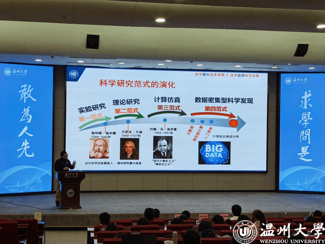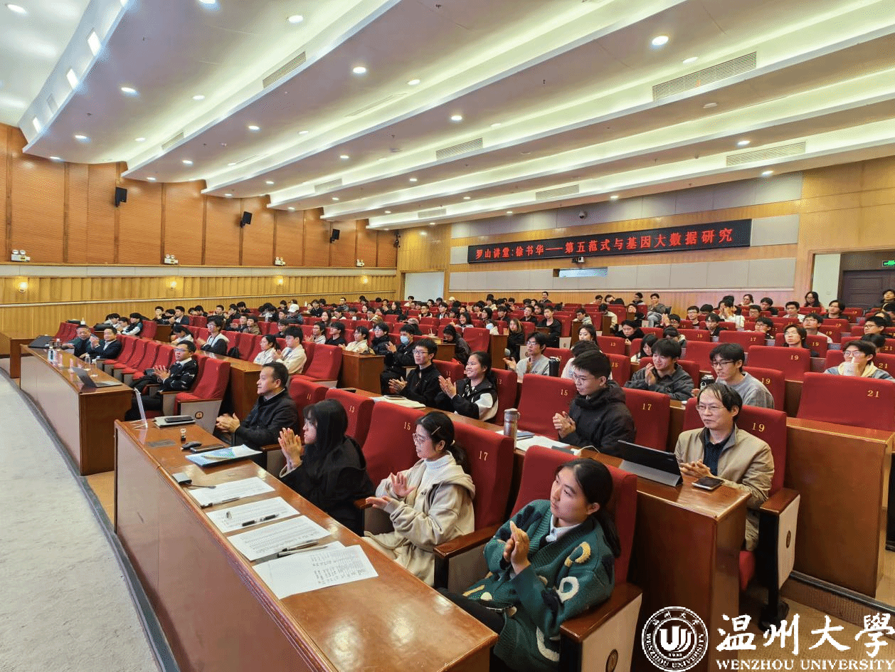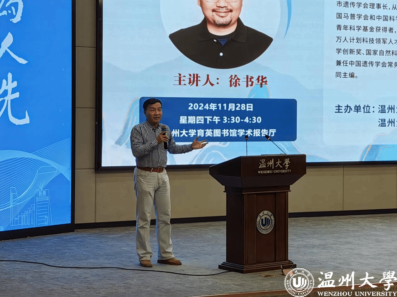 2024年11月28日下午,复旦大学特聘教授、复旦大学进化生物学中心主任、上海市遗传学会理事长徐书华教授,受邀莅临温州大学罗山讲堂,于育英图书馆报告厅以“第五范式与基因大数据研究”为题,展开了一场精彩的学术讲座。出席本次讲座的嘉宾有图书馆副馆长周志峰、计算机六合彩网站 陈恒教授和多名骨干教师,此次讲座由陈恒教授主持,吸引了百余名温州大学师生前来聆听。