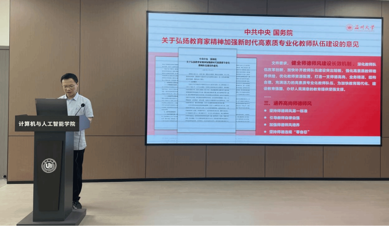 会上,全力书记领学了党的十八大以来中央八项规定精神的落实成效与宝贵经验,强调全体教职工要进一步提高政治站位,持之以恒推进作风建设,营造风清气正的育人环境。随后,他围绕师德师风建设开展专题学习,从“明师德要求、学师德楷模、遵师德规范、守师德底线”四个方面,号召全体教师以德立身、以德立学、以德施教,争做新时代“四有”好老师。此外,他还传达了中共中央、国务院《党政机关厉行节约反对浪费条例》的相关要求,提醒教职工在日常工作中践行勤俭节约,强化责任意识。