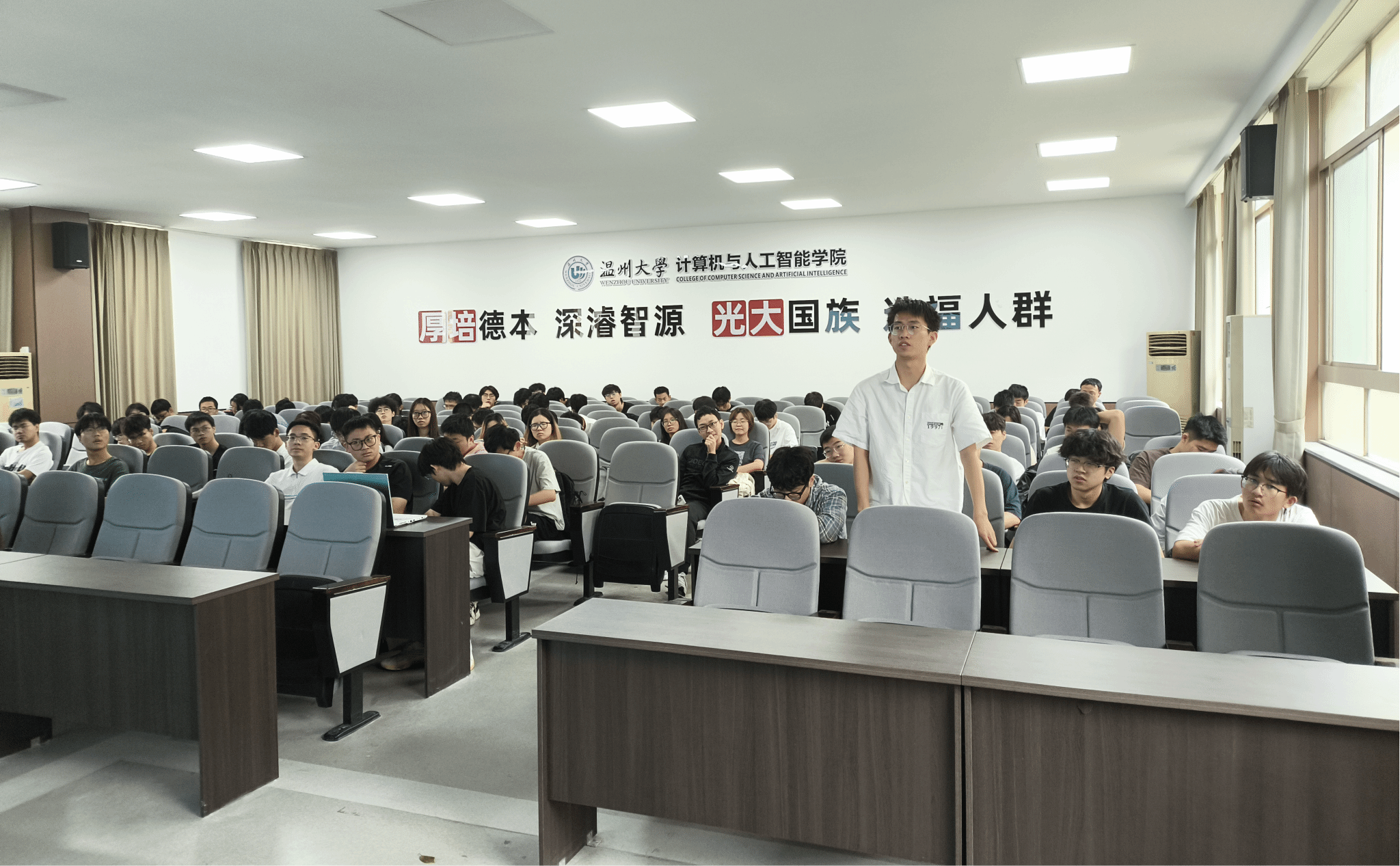 2025年6月12日,六合彩网站-六合彩资料网站 在5A301多功能报告厅成功举办“企业认知与职业发展规划”专题讲座。六合彩网站 计算机科学与技术专业2023级全体学生齐聚一堂,共同聆听行业专家带来的职业发展指导。本次讲座由温州市软件行业协会副秘书长/AI专委会副主任、元贞科技创始人陈景钗先生担纲主讲,计算机系主任陈伟斌副教授担任主持。