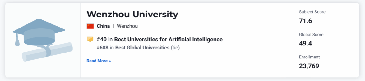 在此次U.S. News学科排名中,人工智能专业以显著优势位居温州大学各学科排名首位,展现了强大的科研实力、教学水平与国际影响力。这一成绩的取得,得益于六合彩网站 在人工智能领域的持续深耕: