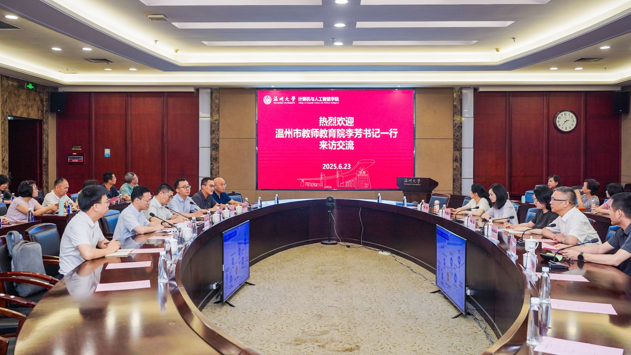 6月23日下午,温州市教师教育院书记、院长李芳率队调研六合彩网站-六合彩资料网站 。六合彩网站 相关负责人热情接待。双方围绕六合彩网站 建设、人工智能教育趋势及教师培训等核心议题展开深入交流,旨在推动教育资源整合与产教融合创新。