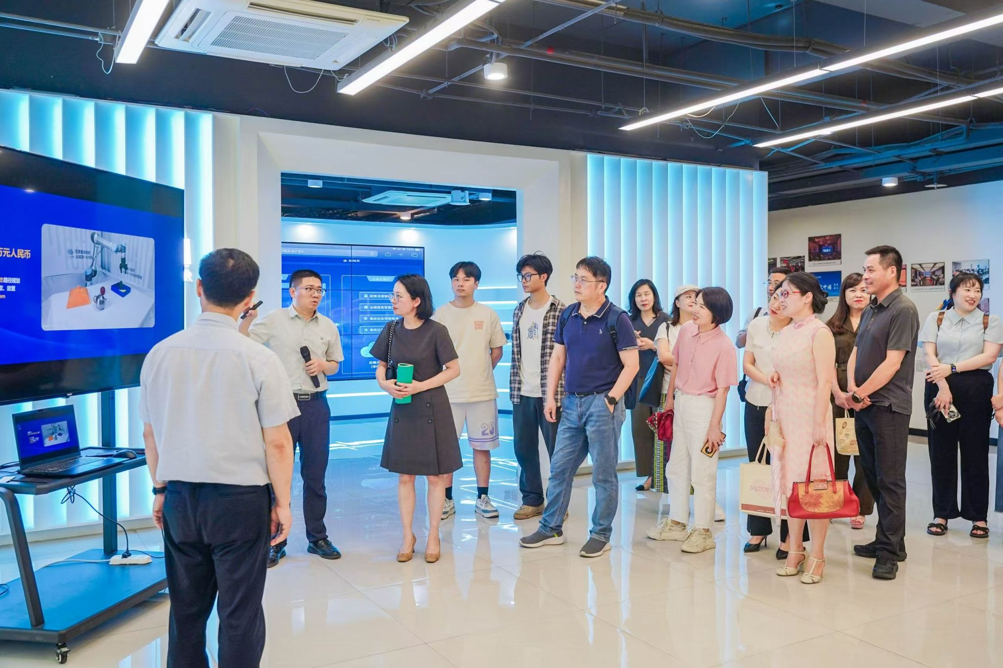 最后,调研团专程前往鹿城区仁信大厦,走访温州大学元宇宙与人工智能研究院。在研究院院长陈昂的引导下,团队亲身体验了前沿技术在教育场景中的应用案例,并就元宇宙技术与教学融合、人工智能课程开发等议题展开深入探讨,为未来教育创新模式开拓了新思路。
