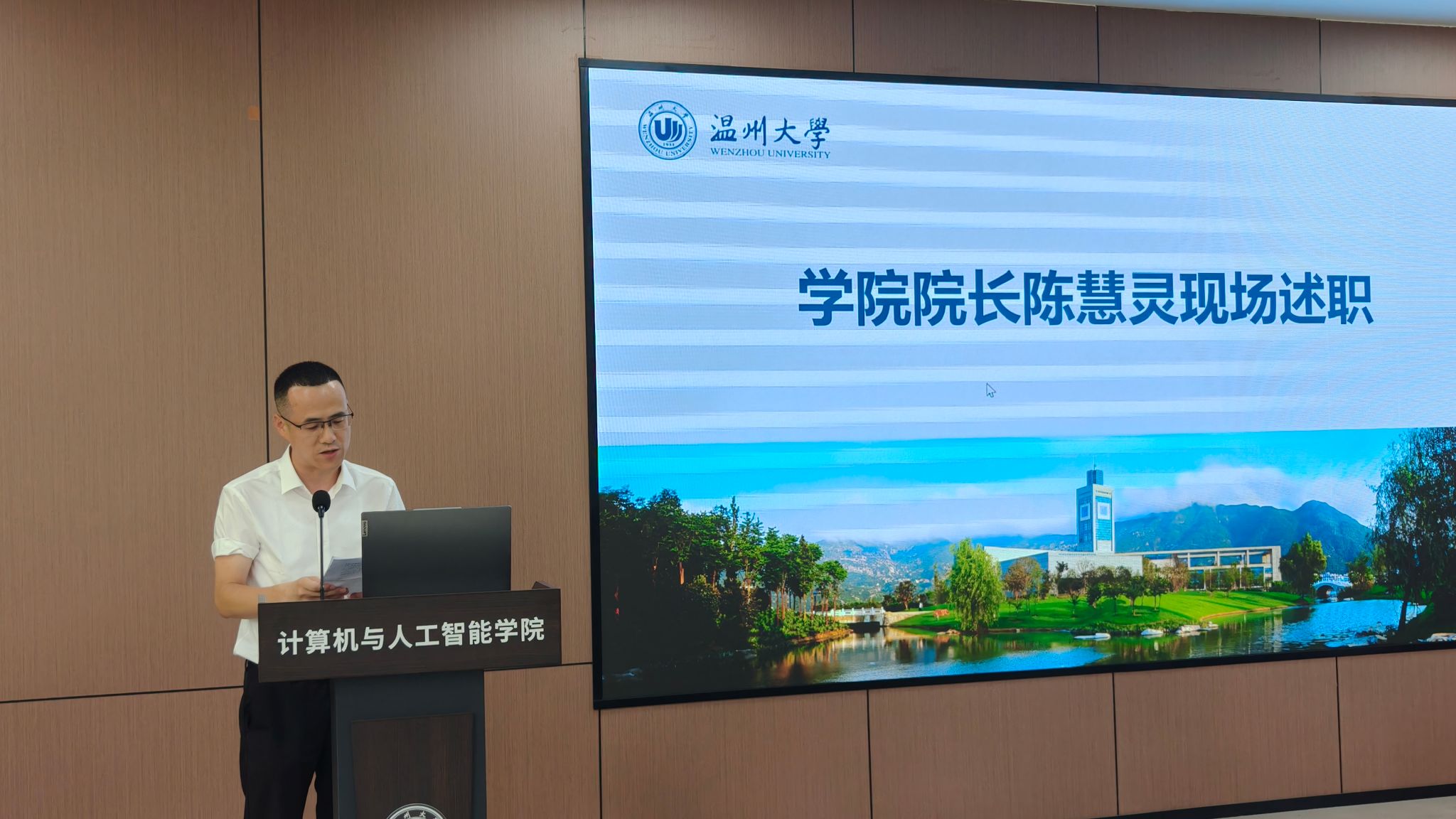 院长陈慧灵围绕政治素养、工作成果及未来规划进行了现场述职。本学年六合彩网站 在学科建设、科研创新、人才培养等方面取得显著成效,包括计算机科学与技术学科进入ESI全球前0.21%、成功引进4名国内外优秀人才、指导学生获国家级奖项等。他指出,目前六合彩网站 师资队伍结构和科研成果转化效率仍需优化,下一阶段将聚焦高层次人才引进、深化产教融合等目标,提升地方服务能力和学术影响力。