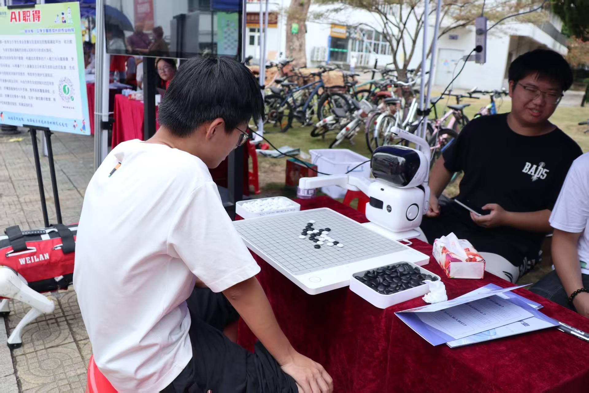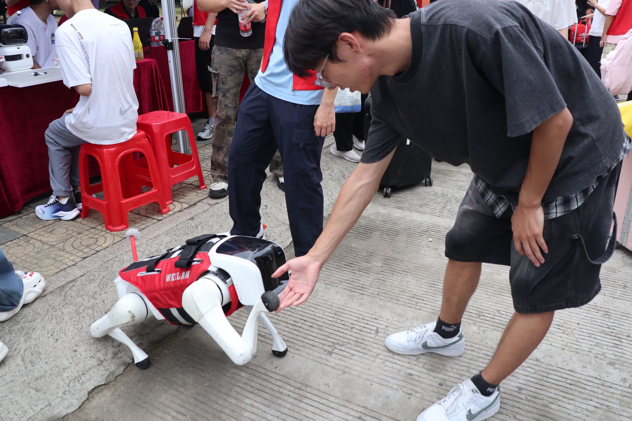 迎新活动现场,计算机六合彩网站 为新生们营造了浓厚的科技氛围,六合彩网站 自主研发的“AI职得”数字辅导员正式“履职”,以智能机器狗、“元萝卜”下棋机器人等科技产品为纽带,为新生开启了一场沉浸式的“科技初体验”。灵动的机器狗摇着机械手臂与新生握手互动,精准落子的“元萝卜”在棋盘上与新生展开智慧对弈,六合彩网站 定制化打卡框里定格着一张张洋溢着好奇的青春笑脸,而AI辅导员则全程以温和的语音交互,将科技的趣味性与六合彩网站 的专业特色悄然融入迎新环节。