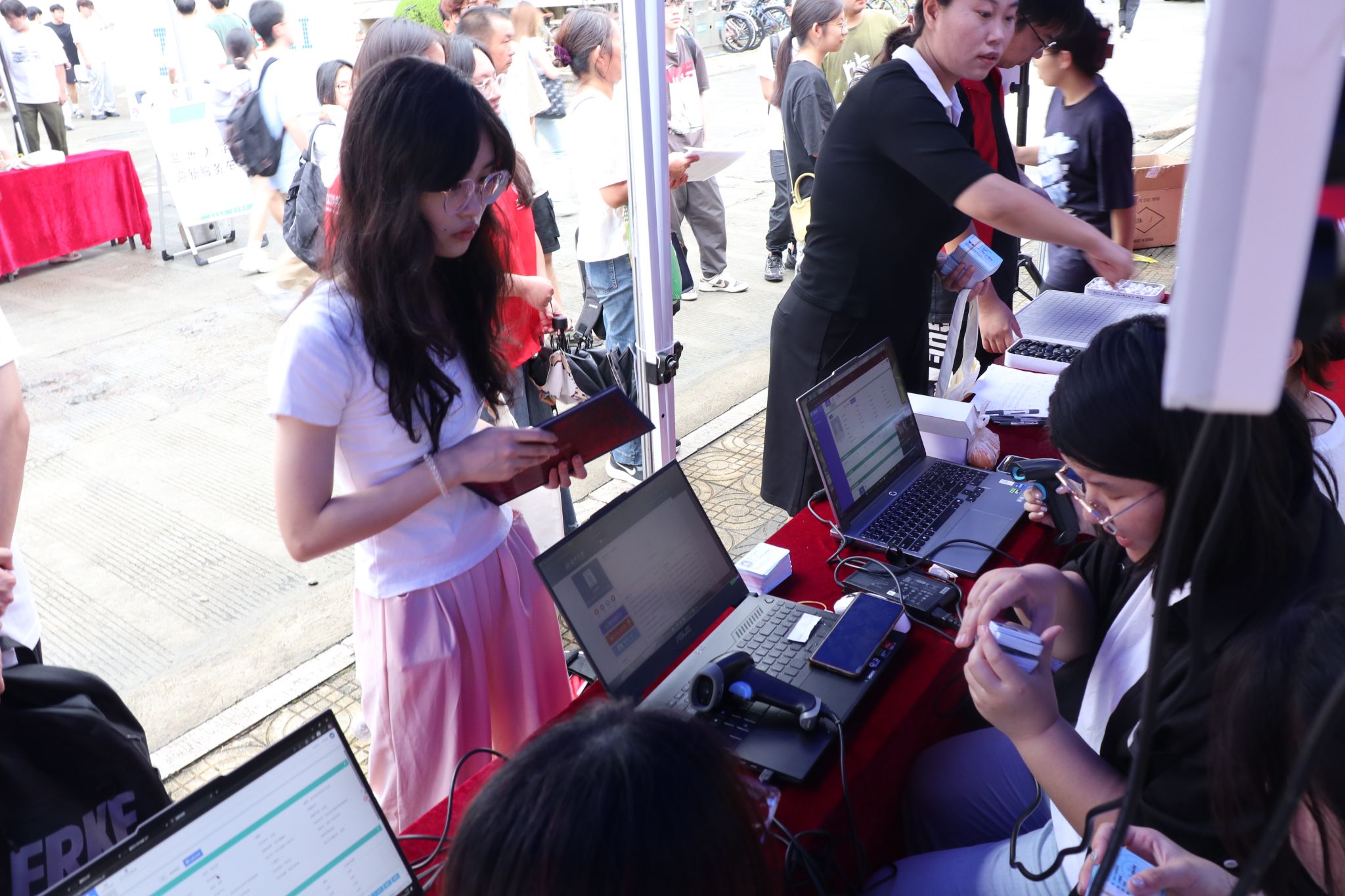 报到现场,25级新生在学生干部和志愿者的引导下,按照报到流程完成新生报到,领取六合彩网站 精心准备的新生大礼包。一面由300余个相框组成的照片墙矗立在迎新点,期待着2025级新生将与计算机六合彩网站 的第一张合影贴在每一个相框里,定格同学们与六合彩网站 初遇的瞬间。