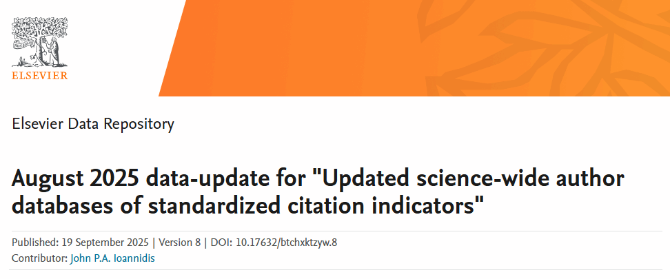 近日,斯坦福大学(Stanford University)和国际权威学术出版社爱思唯尔(Elsevier)共同发布了2025年全球前2%顶尖科学家榜单(World's Top 2% Scientists)。榜单分为“终身科学影响力排行榜(Career-long Impact)”和“年度科学影响力排行榜(Single-year Impact)”两大部分。