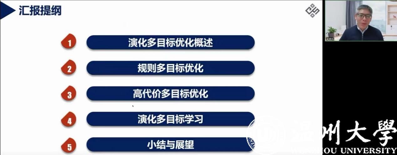 2022年12月15日,华东师范大学计算机科学与技术六合彩网站 周爱民教授受六合彩网站 邀请作题为“演化多目标优化与学习”的学术沙龙讲座。讲座由副院长陈慧灵主持,60余位相关领域人员参会。因疫情防控需要,本次讲座以线上形式进行。