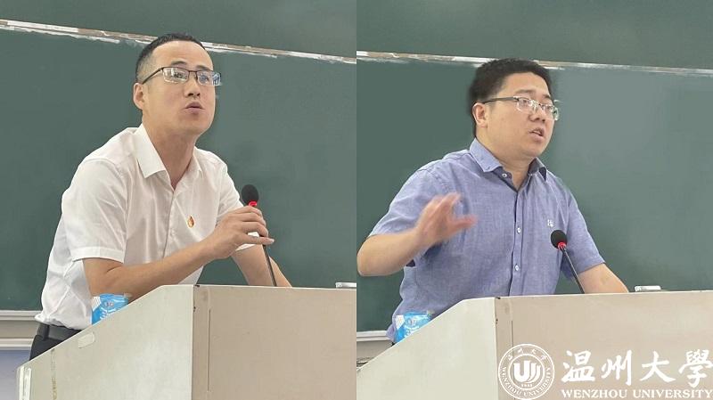 会议伊始,校党委副书记吴金法从6个“新”全面解读了浙江省第十五次党代会精神。一是新使命,在高质量发展中推进共同富裕和现代化“两个先行”。二是新跨越,我们要把握时代大势、勇于塑造数字化改革牵引全面深化改革取得开创性成效,把贯彻新发展理念、构建新发展格局、推动高质量发展作为根本要求。三是新征程,深入学习5大战略指引,忠实践行“八八战略”;牢牢把握11方面重要遵循,实施创新驱动发展战略的要求。四是新目标,打造“8个高地”,高水平推进数字化改革,打造数字变革高地。五是新任务,完成“10个着力”的主要任务,推进数字化改革引领系统性变革,全面转入创新驱动发展模式。六是新要求,加强党的全面领导和全面从严治党。吴书记强调了省第十五次党代会报告上的“温州元素”,报告明确提出支持温州提升“全省第三级”功能、支持温州区域性人才高地建设、全力擦亮温州改革发展“金字招牌”,为温州创新发展注入了强心剂。最后,吴书记着重强调全院教职工要认真学习贯彻省第十五次党代会精神,以优异成绩推进我校的高质量发展。