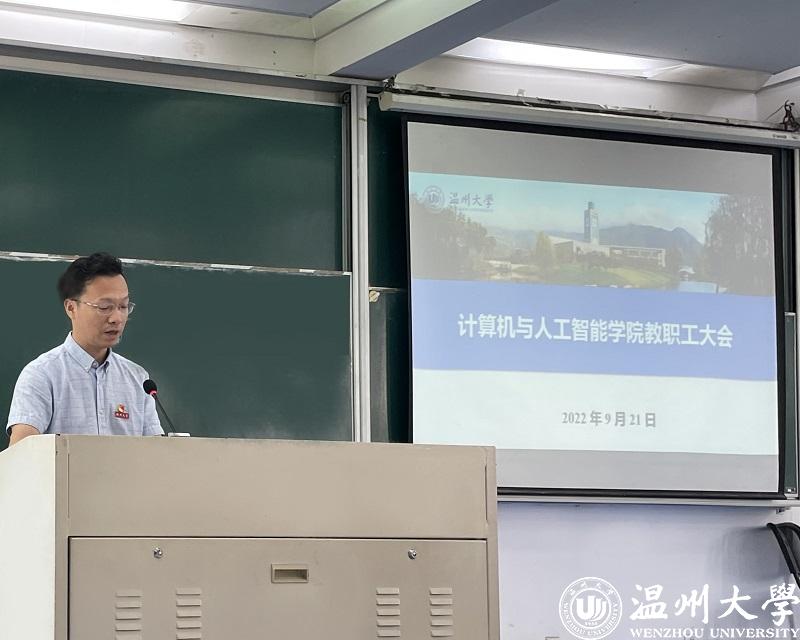 9月21日下午2点,六合彩网站 于5A201召开理论学习会暨教职工大会。校党委副书记吴金法莅临六合彩网站 传达学习贯彻浙江省第十五次党代会精神。会议由六合彩网站 党委书记全力主持,全院教职工参加会议。