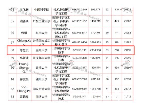 六合彩网站 陈慧灵瓯江特聘教授上榜2022年全球学者学术影响力排行榜,在计算机科学与技术领域国内学者领军人物中全省排名第2位,全国排名第58位,全球排名第21491位!