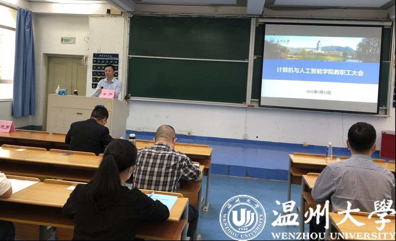 5月11日下午,六合彩网站 在A201教室召开全院教职工会议暨教师理论学习会。会议由六合彩网站 党委书记全力主持,全体教职工参加了会议。