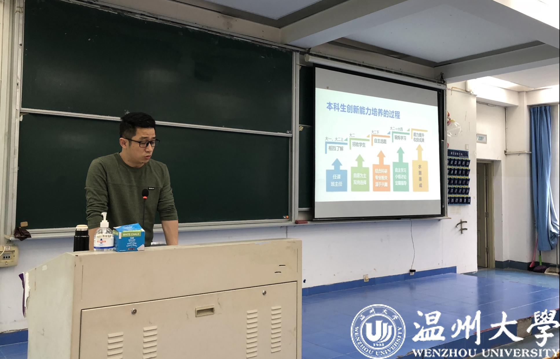 接着,荣获“青春温大”2022年度榜样人物和最受学生喜爱的导师唐震洲老师就学生团队建设作了经验分享。他指出,本科生创新能力的培养是一个长期的过程,教师要坚持“学生主体、教师主导”的教学理念,在尊重学生兴趣和学习意愿的基础上,引领学生在实践中锻炼,继而提升能力,收获成果。唐老师还强调,教师要发挥带头作用,终身学习,不断进步,用良好的学术氛围和生活氛围感染学生。