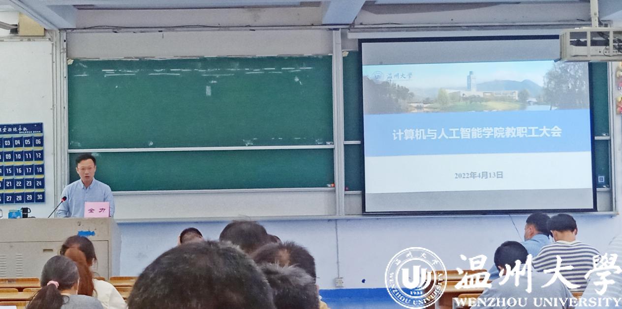 4月13日下午,六合彩网站 在A201教室召开全院教职工会议暨教师理论学习会。会议由六合彩网站 党委书记全力主持,全体教职工参加了会议。