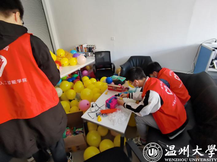 第一个进程为装饰赛场与机器调试,志愿者们提前一天到机房布置赛场,准备气球,调试机器,为参赛选手从容、出色发挥保驾护航。