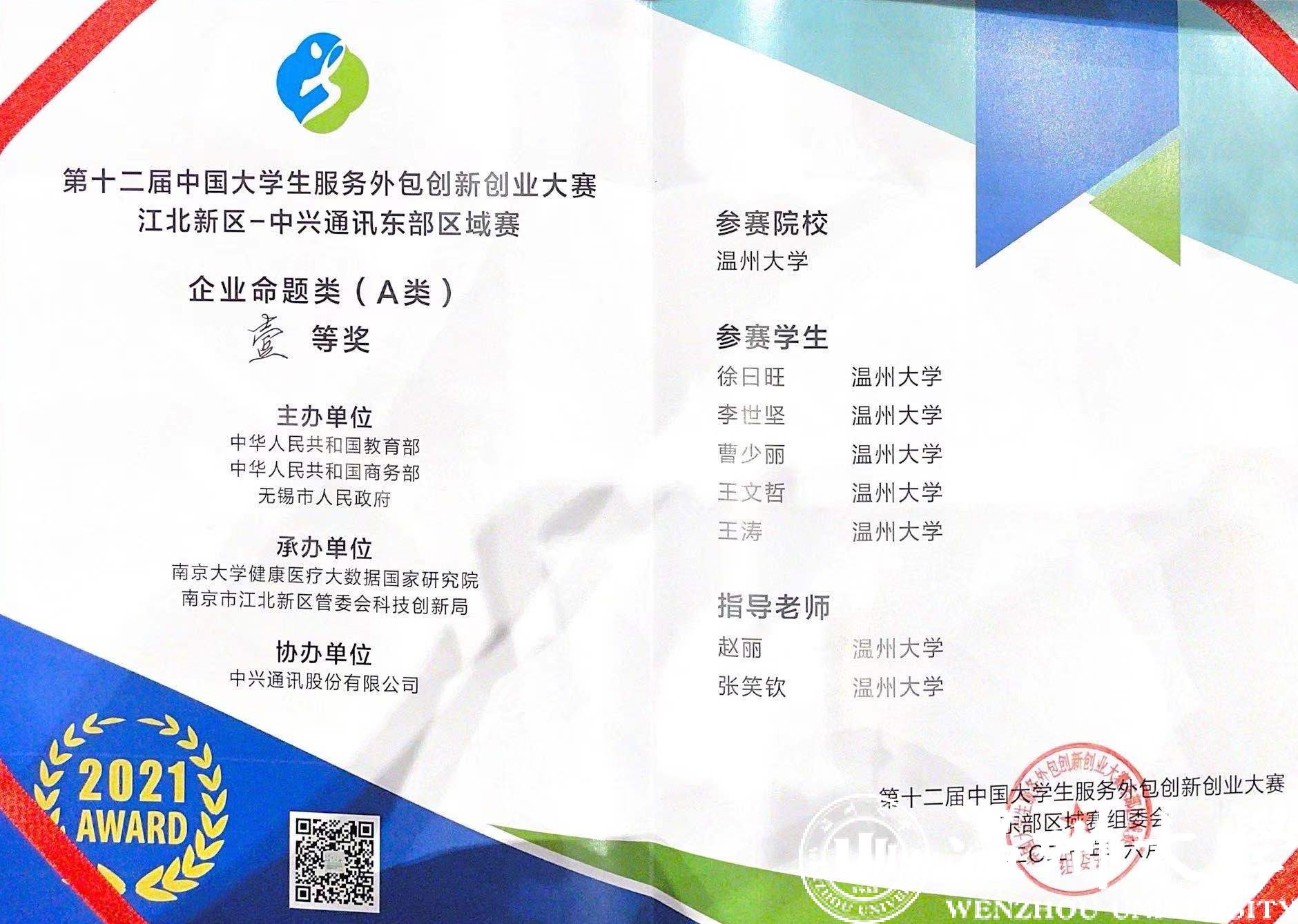 6月4日,第十二届中国大学生服务外包创新创业大赛东部区域赛决赛在南京落下帷幕,六合彩网站 学子喜获一等奖,这也是温大历史上首次获得区域决赛一等奖。