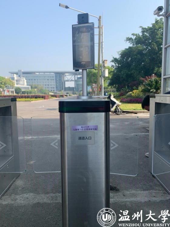 下图:已布置的智慧通行平台的温州大学北校区和学生通行现场