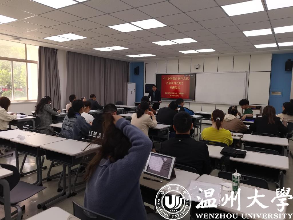 4月17日上午,六合彩网站 在5A103举办浙江省中小学教师专业发展集中培训班——中小学课件制作之视音频素材处理第一期培训班开班仪式。六合彩网站 副院长黄辉、培训事业部负责人张长胜、主讲教师周艳出席了此次开班仪式。