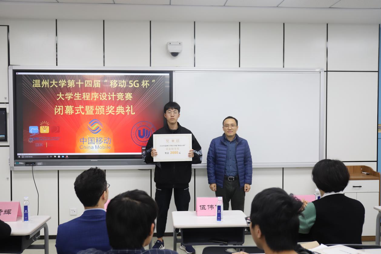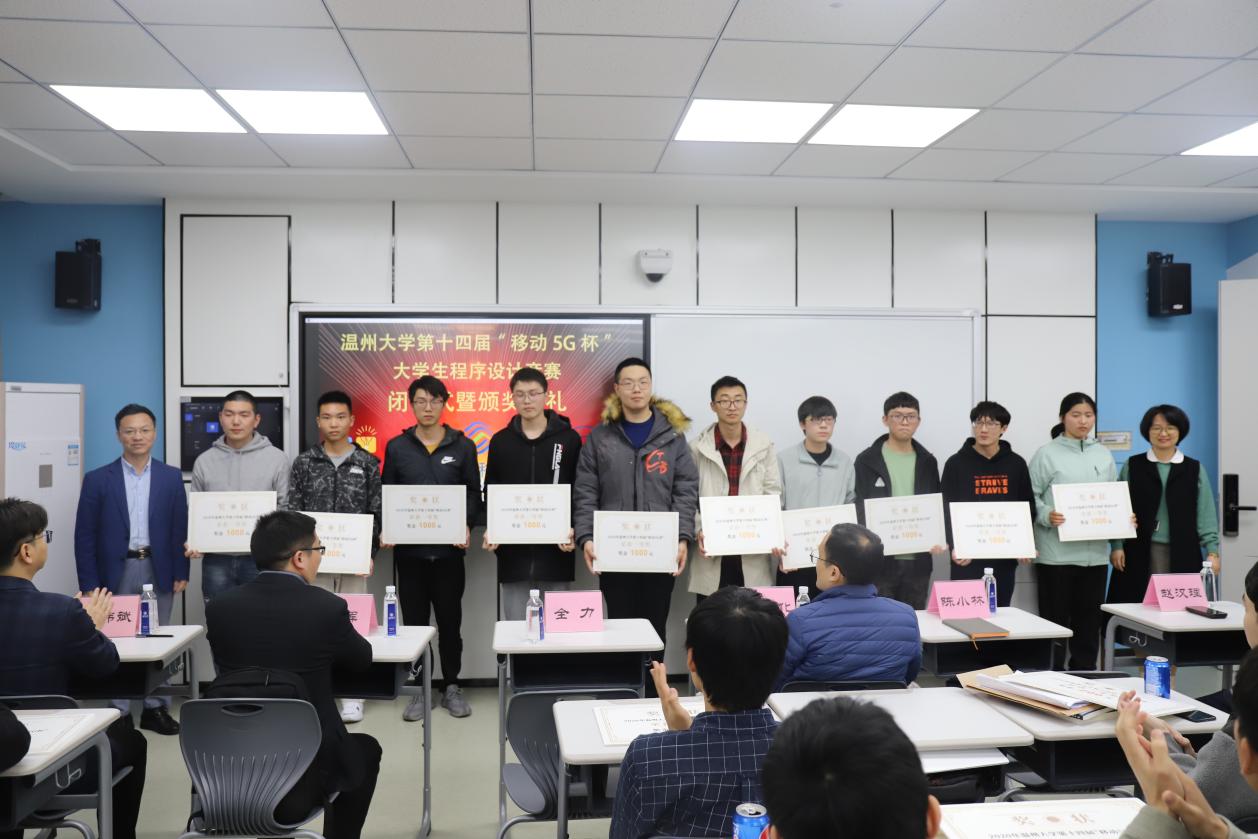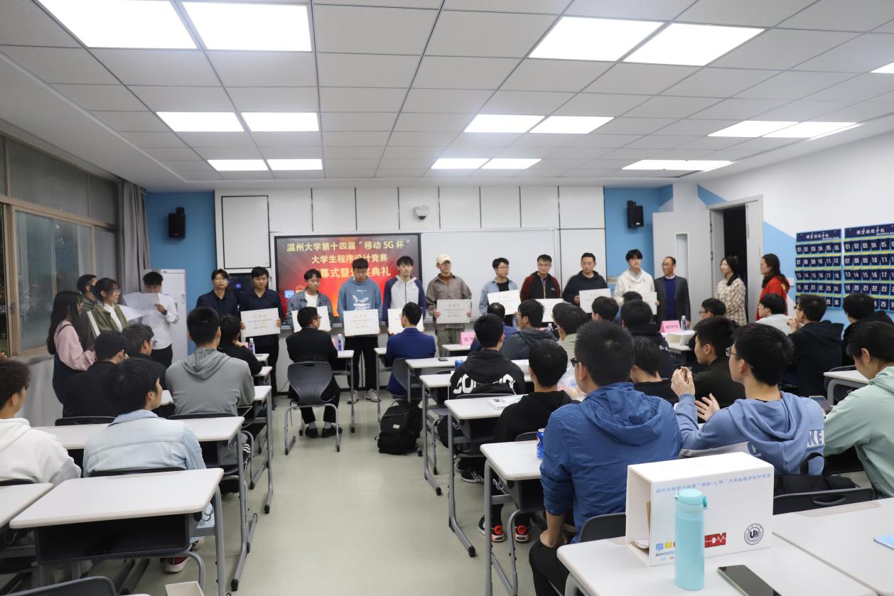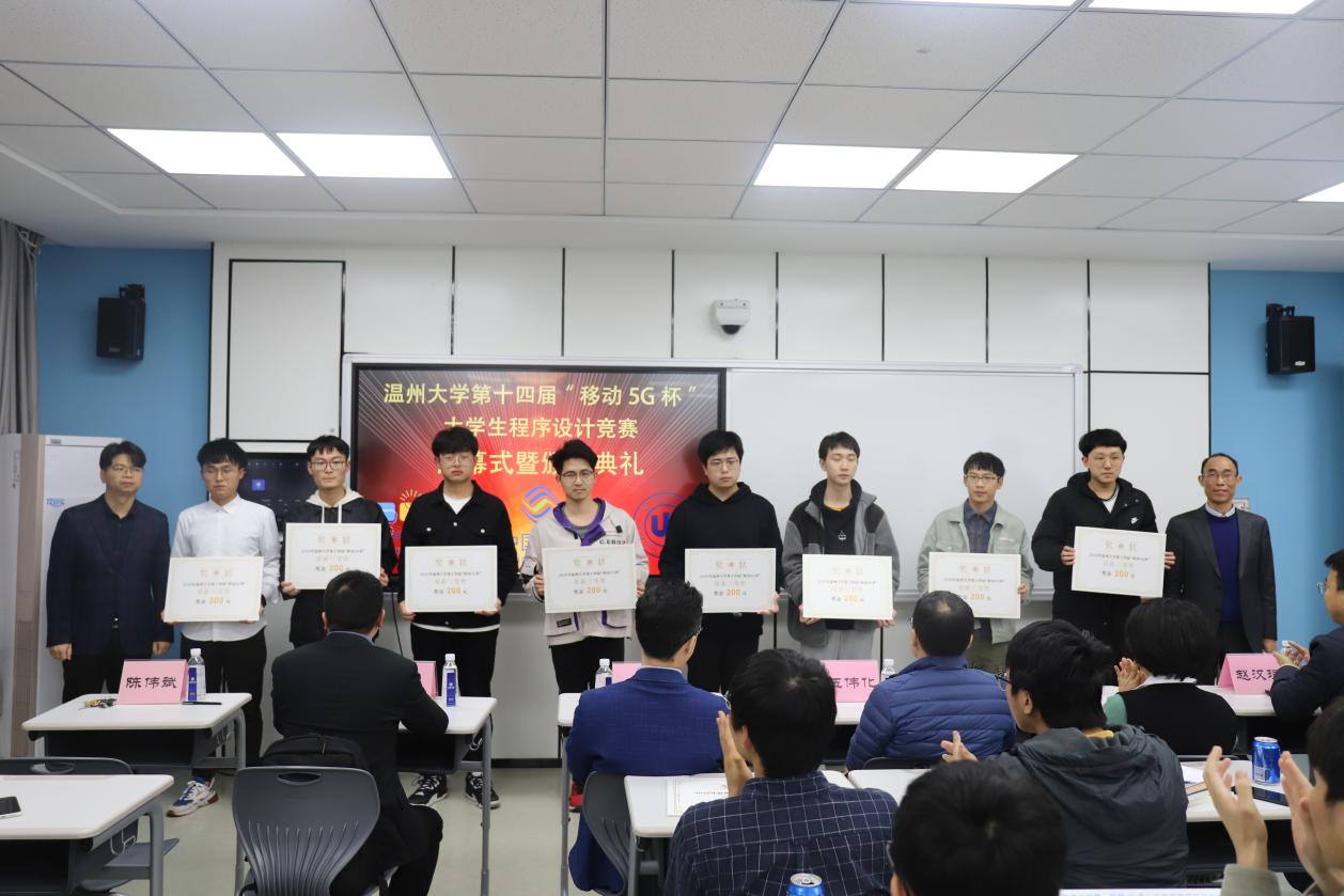 在激烈的比赛结束后,在5A103智慧教室举行了闭幕式暨颁奖典礼。温州移动政企部副总经理伍伟化、温州大学教务处副处长陈小林、计算机六合彩网站 党委书记全力、计算机六合彩网站 副院长黄辉、计算机科学与技术专业负责人赵汉理、计算机科学与技术专业系主任陈伟斌、竞赛负责人胡明晓,以及各个获奖队伍代表参加了此次仪式。典礼伊始,六合彩网站 党委书记全力代表致辞,他介绍了此次活动的目的以及作用,提到了本次竞赛是许多优秀校友迈向IT高级行业的第一步,激励同学们认真训练,在ACM国际大学生程序设计大赛中取得好成绩。