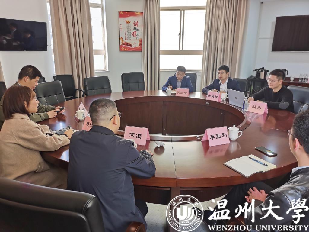 3月16日上午,温州市鹿城区大数据管理中心主任赵洁、副主任王智新携中国移动鹿城分公司总经理何俊、副总经理辛国利一行4人到访六合彩网站 进行合作交流。六合彩网站 院长张笑钦、院长助理胡杰、吴承文老师等热情接待,双方就校地合作进行了深入的交流和探讨。