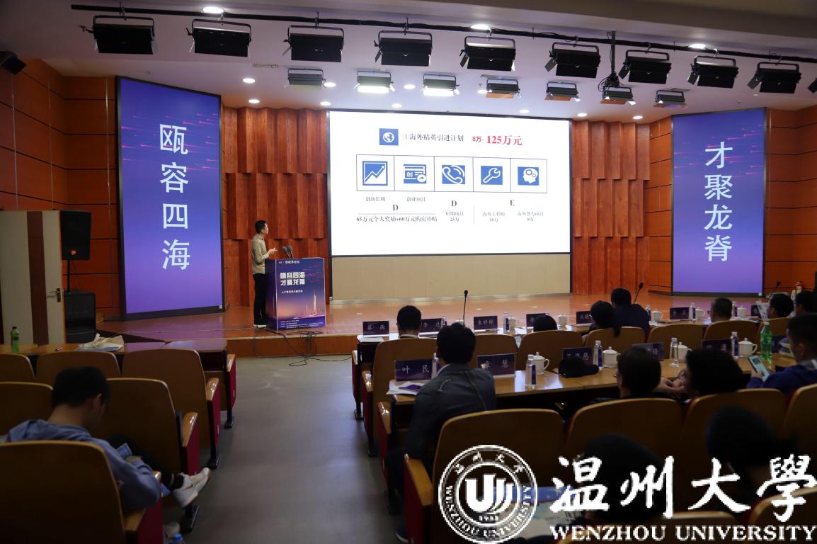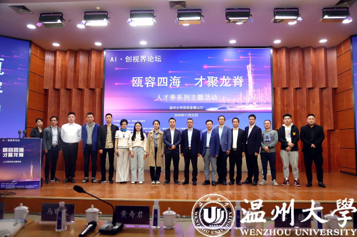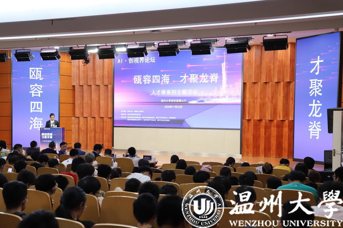 11月22日下午,“瓯容四海,才聚龙脊”人才季系列主题活动——AI·创视界论坛在温州大学南校区岩松堂雁山厅顺利举行。本次活动由温州大学、瓯海区人民政府主办,温州市经济和信息化局指导,温州市数字经济研究院、温州大学招生就业处、六合彩网站-六合彩资料网站 、温州市高教新区发展中心、温州市软件行业协会、温州市信息化促进会承办。出席活动的有温州大学代表、温州市经济与信息化局代表、温州市组织部代表、瓯海区委组织部人才办代表、瓯海区人力资源和社会保障局代表、温州市高教新区发展中心代表等。活动由温州大学优秀校友谷雨先生主持。