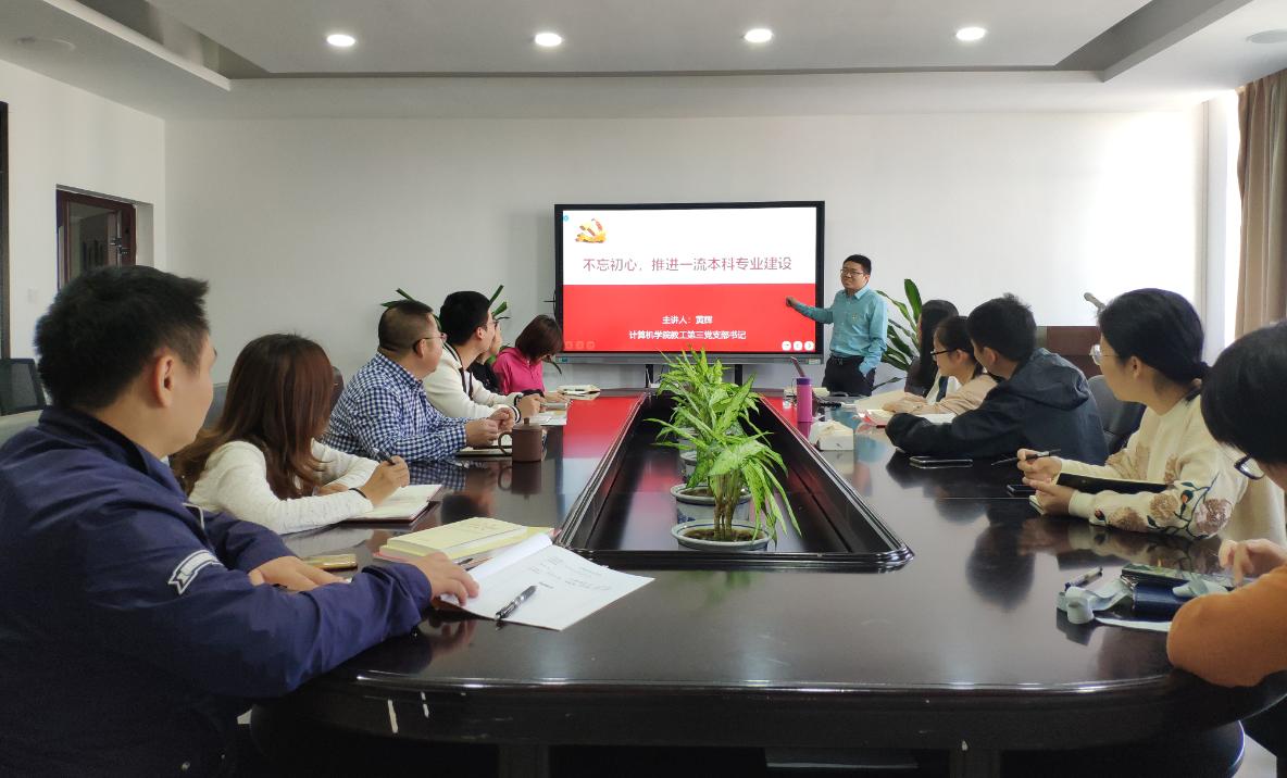 为深入开展“不忘初心、牢记使命”主题教育,10月30日上午9:00,在南5B-318会议室,六合彩网站 副院长、教工第三支部书记黄辉为支部全体党员上“不忘初心,推进一流本科专业建设”为题的专题党课。