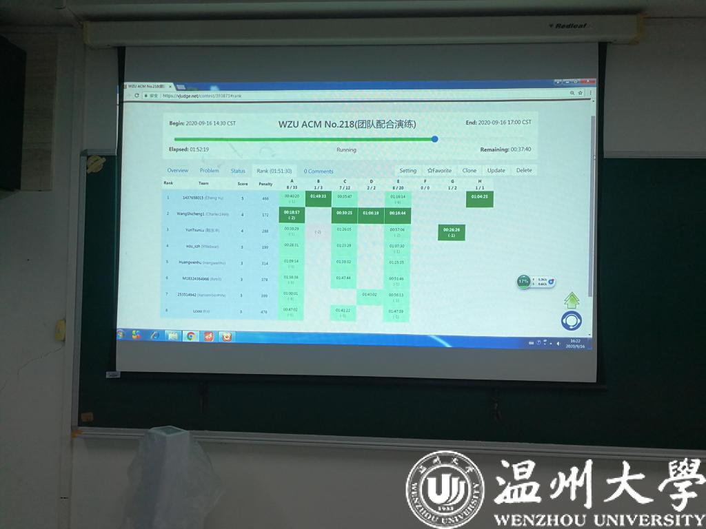 开学第1周周三(9月16日)下午,浙江省第十七届大学生程序设计竞赛我校代表队在5B313机房举行现场团队演练。