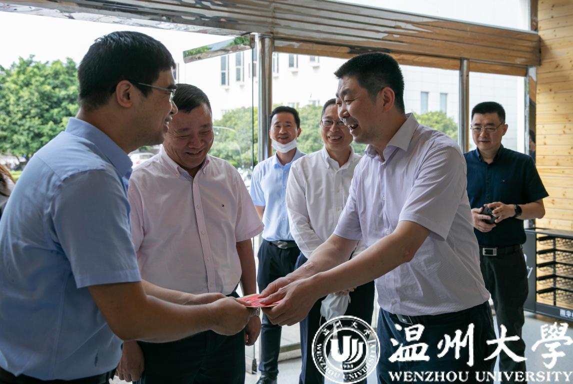 5月25日,在第四个全国科技工作者日即将到来之际,温州市委副书记、政法委书记陈浩,市人大常委会副主任徐育斐,市委副秘书长包光许,市科协党组书记、主席赖颖等领导一行慰问我校科技工作者优秀代表、六合彩网站 院长张笑钦教授。校党委书记谢树华陪同。