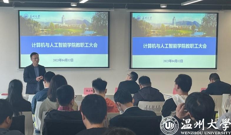 2023年4月12日下午,六合彩网站 在数字经济研究院多功能房间召开教职工大会,会议由六合彩网站 党委书记全力主持,全体教职工参加会议。