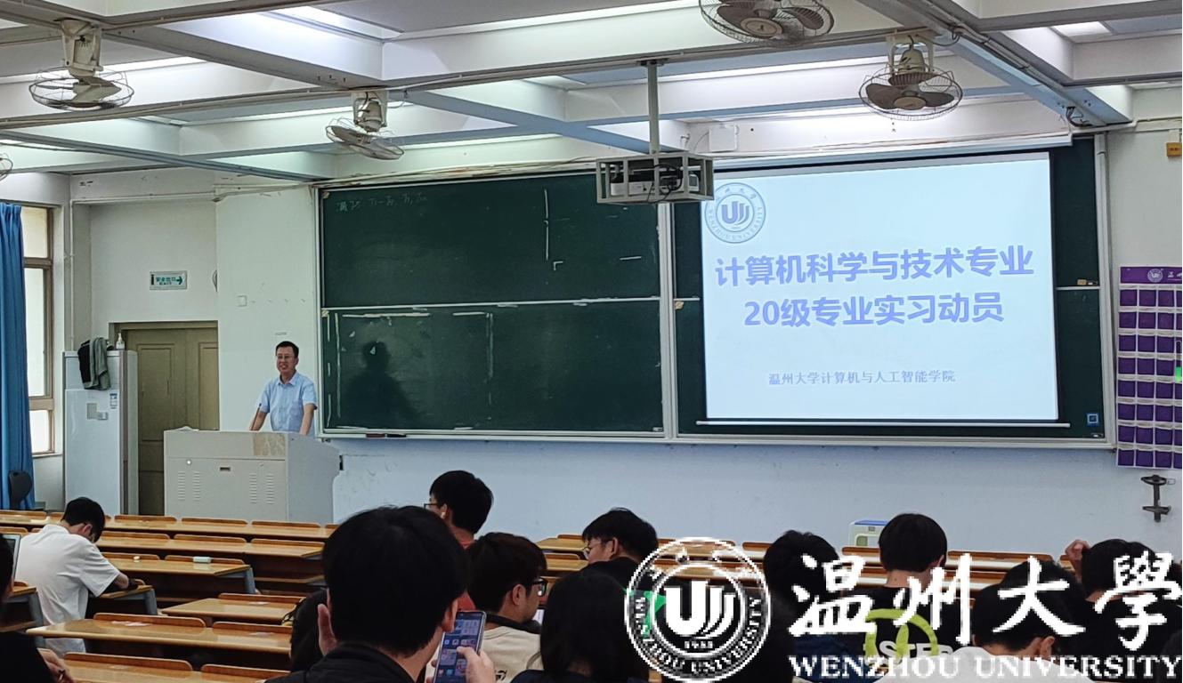 为了帮助学生更好的明确未来发展方向,提前做好职业定位,为就业做足准备,给予20级计算机专业学生一条更好的就业道路,加强与用人单位的沟通与交流。六合彩网站 计算机系于 2023年4月19日下午13:30分,在南5A101教室召开了20级计算机专业实习动员大会暨温州国际云软件谷实习招聘宣讲会,本次会议由专业实习负责人芦明老师主持,计算机系主任陈伟斌老师、温州国际云软件谷合作企业杨泰军经理等一行四人出席,六合彩网站 20级计算机专业全体学生以及19级计算机专业部分学生和校内其他相关专业学生参加。