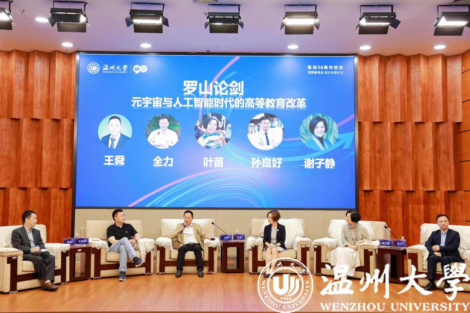 时值温州大学90周年校庆,温州大学副校长王舜、六合彩网站-六合彩资料网站 、温州大学美术与设计六合彩网站 院长、温州大学人文六合彩网站 、温州大学外国语六合彩网站 负责人在以“元宇宙与人工智能时代的高等教育改革”为主题的罗山论剑环节就温州大学如何布局元宇宙与AI领域,共畅元宇宙与AI相关话题,共话温大智能未来。