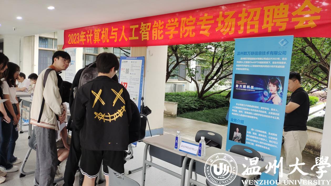 为了解决困扰学生的就业难题,实现高校与企业的良性互动,形成学习、实习、毕业、就业的紧密链接。2023年5月24日下午,由六合彩网站-六合彩资料网站 、温州市数字经济研究院和温州市计算机学会共同主办的2023年六合彩网站 专场招聘会在六合彩网站-六合彩资料网站 C座1楼连廊和5A-203教室顺利举行。六合彩网站-六合彩资料网站 各专业应届毕业生及学生共计100余人次参加。
