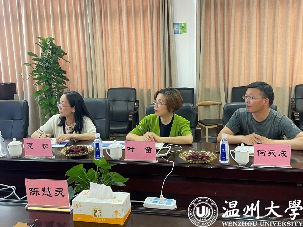 2023年6月5日下午,外国语六合彩网站 院长叶苗、副院长何永成及翻译系系主任夏蓉一行来六合彩网站 调研交流。本次交流会在5B318会议室举行,六合彩网站 副院长陈慧灵热情接待。