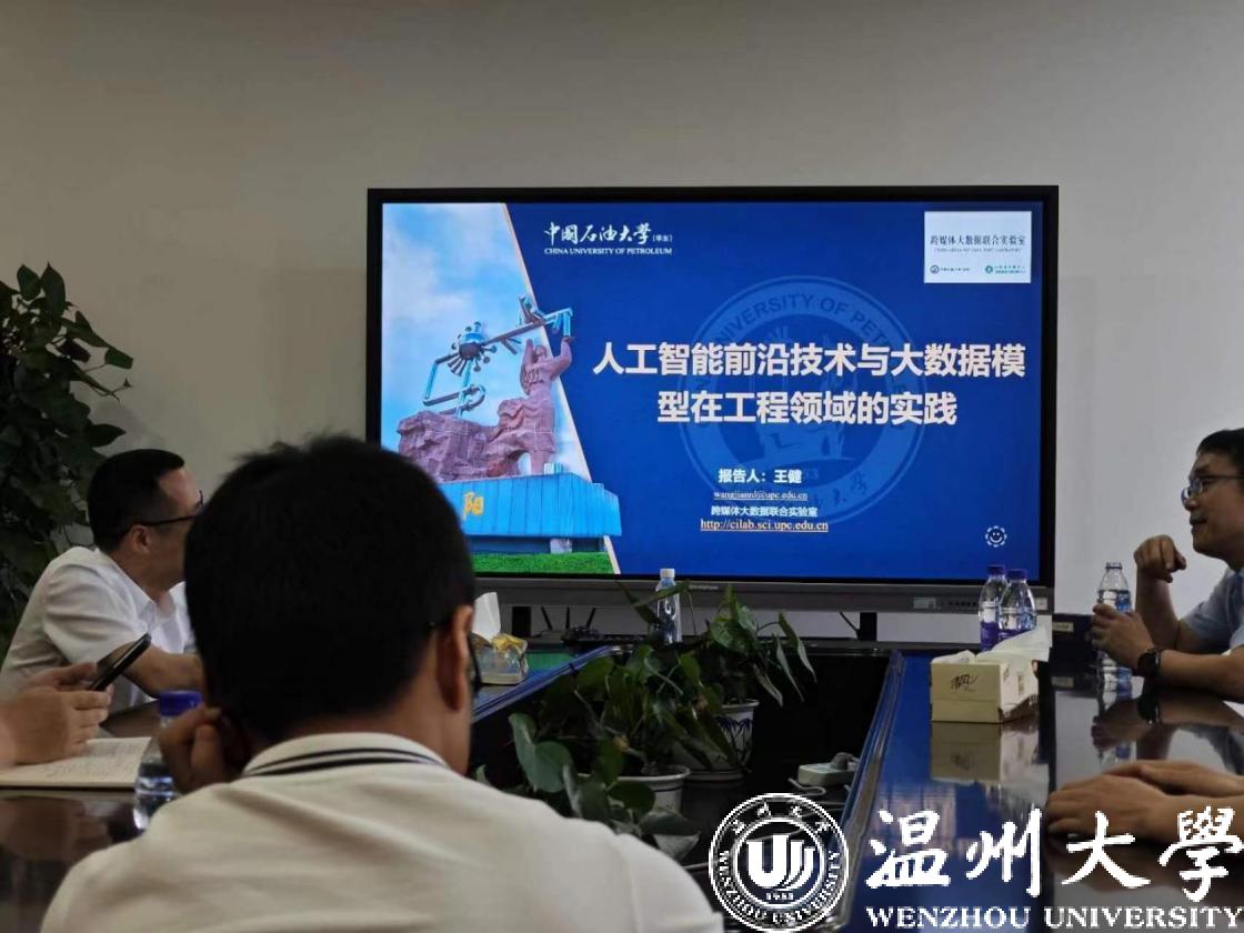 2023年6月17日15:30,中国石油大学(华东)王健教授应邀来六合彩网站 开展作题为“人工智能前沿技术与大数据模型在工程领域的实践”的学术讲座。讲座由陈慧灵副院长主持,相关领域师生共计20余人聆听了本次讲座。