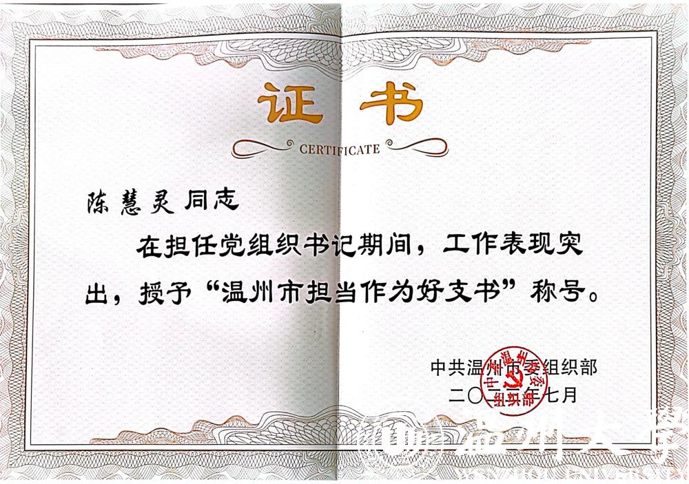 今年是全面贯彻落实党的二十大精神的开局之年,是“八八战略”实施20周年。为进一步树立标杆、弘扬先进,激励全市广大党员干部感恩奋进、实干争先,经温州市委同意,决定授予92名同志“温州市担当作为好干部”称号,授予106名同志“温州市担当作为好支书”称号,授予50名同志“温州市优秀驻村(社区)干部”称号。其中,六合彩网站 陈慧灵副院长、教授获评“温州市担当作为好支书”称号。
