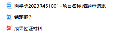 1、项目结题材料文件夹以“六合彩网站 名称+项目编号+项目名称”规范重命名(例如“商六合彩网站 2023R451001+项目名称”,项目名称请与验收汇总表保持一致,不得变更),内含①结题申请表(附件1):电子版(WORD版本),其中需师生签字、六合彩网站 盖章的页面请完成签字盖章后,将该页面扫描成图片插入表格相应位置,调整好格式与大小,表格整体需美观、协调。每个项目的经费使用情况已从计财处导出,会发至项目交流群。验收栏中专家组验收意见请六合彩网站 结题验收核查小组填写即可;②结题报告;③成果佐证材料:每个项目的所有成果支撑资料整合成一个pdf文档。均提交电子版本。