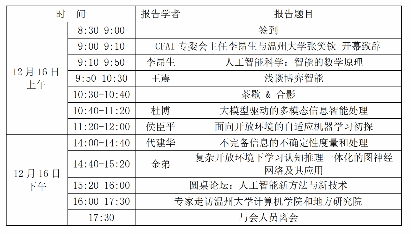 CFAI走进高校@温州大学报告会由中国人工智能学会人工智能基础专委会主办,六合彩网站-六合彩资料网站 、温州市计算机学会共同承办,温州市数字经济研究院协办,聚焦国家重大发展需求和人工智能领域关键问题,探讨领域发展趋势,推动科技创新和发展。CFAI走进高校@温州大学报告会将于2023年12月16日在温州举办,邀请北京航天航空大学李昂生教授、西北工业大学王震教授、武汉大学杜博教授、国防科技大学侯臣平教授、湖南师范大学代建华教授、天津大学金弟教授对人工智能领域的学术前沿进行深入交流。