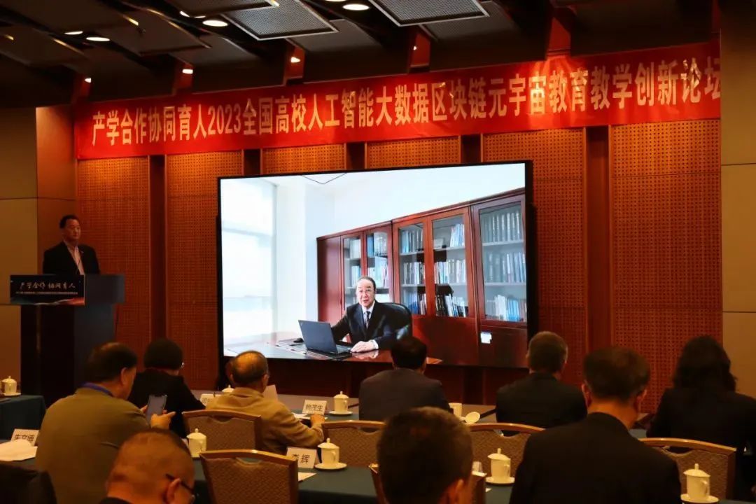 2023年11月4日,由全国高校人工智能与大数据创新联盟、华算人工智能研究院主办,中科院软件所指导,云南大学、东华大学、北京信息科技大学、上海工程技术大学、安徽工程大学、山西农业大学、汕头大学、中北大学、重庆邮电大学、宁波大学科学技术六合彩网站 、深圳职业技术大学、上海杉达六合彩网站 、广东东软六合彩网站 、沈阳城市六合彩网站 、晋中信息六合彩网站 、机械工业出版社 北京中关村软件园人才基地培训中心、北京经济技术开发区企业协会、佛山市人工智能学会、国网山西省电力公司信息通信分公司等全国20多家高校和机构协办的“产学合作、协同育人2023第六届全国高校人工智能大数据区块链元宇宙教育教学创新论坛”在北京隆重召开。本届论坛是贯彻落实习近平总书记关于我国教育、科技、人才三位一体发展重要论述的具体实践,是落实教育部 “产学合作、协同育人”战略的具体行动,是推动教育部“高等学校人工智能创新行动计划”、“高等学校区块链技术创新行动计划”的系列活动之一。会议由联盟秘书长、华算人工智能研究院执行院长朱启明主持。