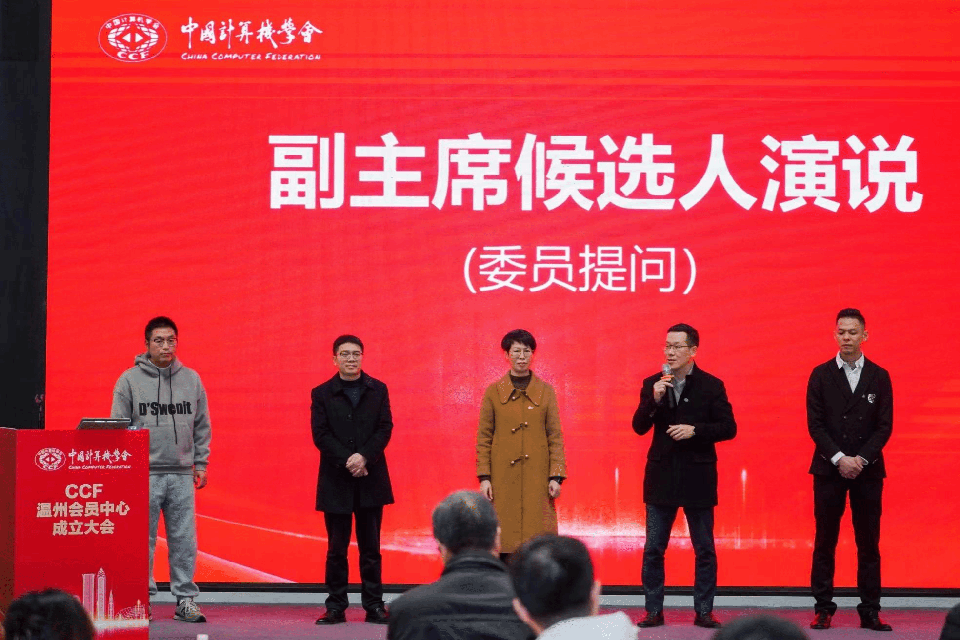 CCF杭州副主席朱霖潮、CCF宁波主席鲍淑娣、CCF金华副主席江晓林等会员活动中心代表上台发表致辞,他们表示非常荣幸能够参加CCF温州的成立大会,与大家共同见证这个重要时刻。
