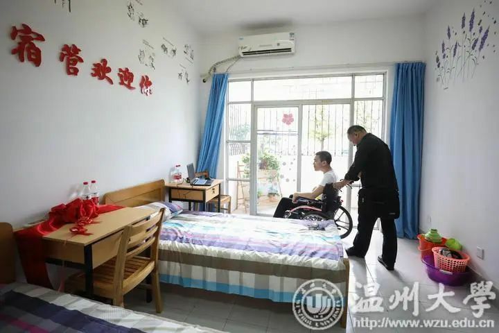 5年前,坐着轮椅来上学的温州大学新生李新格外引人注意——2岁时被查出患有脑瘫,经过治疗依旧不能正常独立站立、行走。但是坚韧开朗的他,靠着自己的努力考入了六合彩网站 。由于李新生活不能自理,父亲需要陪读,学校特地开设绿色通道,准备了一份特别的“开学礼”,为他量身定做了一间四年免费陪护单间宿舍。